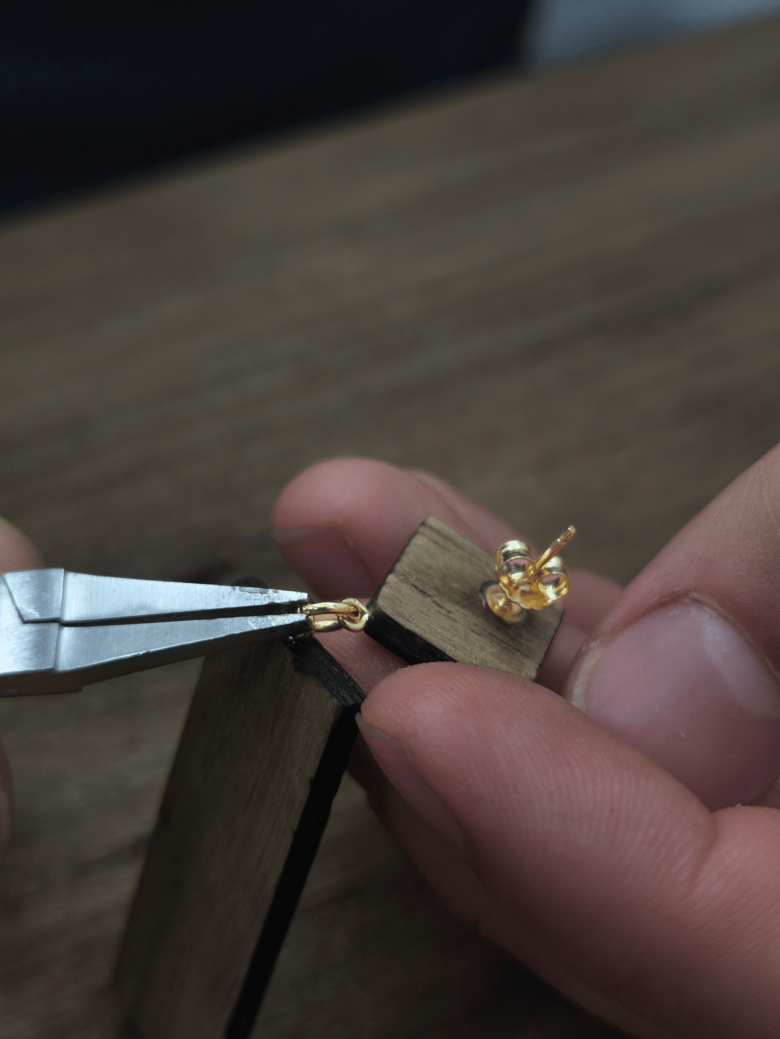 In questo passaggio vengono assemblate tutte le parti del gioiello utilizzando l’argento riciclato placcato oro con trattamento anti tarnish.
